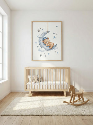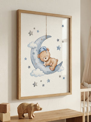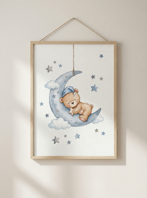 Schlafender Bär auf dem Mond | Kinderzimmer Poster