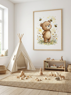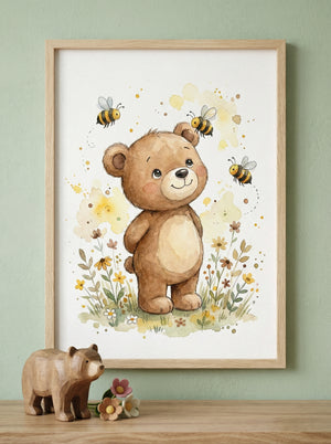 Kleiner Bär & Bienen | Kinderzimmer Poster